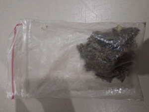A suspeita tentou fugir e esconder a droga ao ver a viatura, mas acabou detida e levada à Central de Polícia.